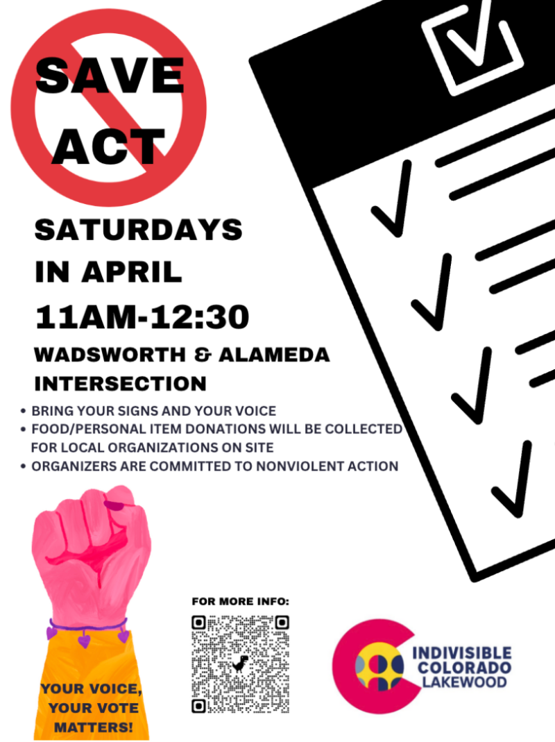 4/25, Saturday, 11am-12:30pm - No SAVE Act Saturdays at Wadsworth and Alameda (flyer below)