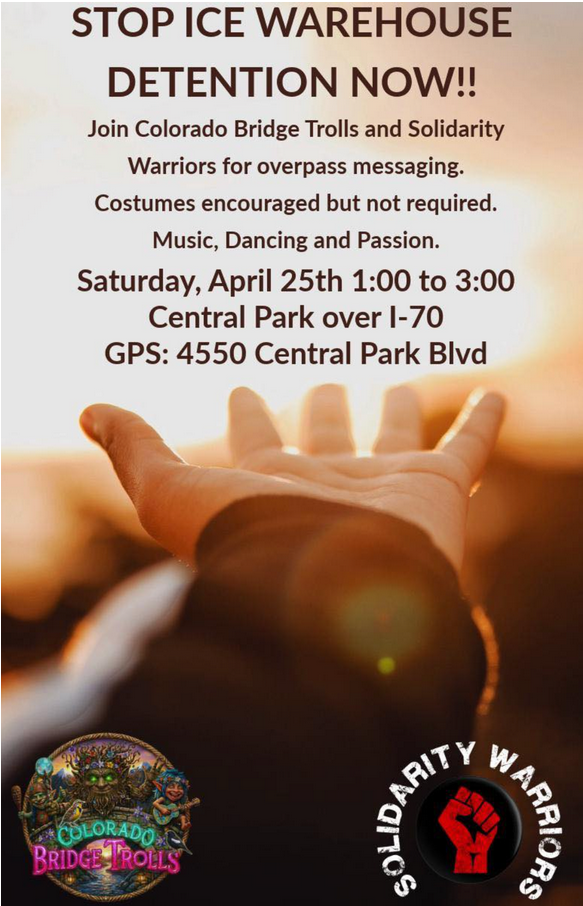4/25, Saturday, 1-3pm - Stop ICE Warehouse Detention Now! overpass protest (flyer below)