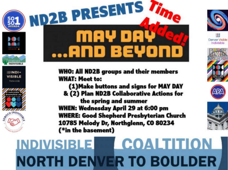 4/29, Wednesday at 6pm - May Day… & Beyond ND2B Coalition Event in Northglenn (flyer below)